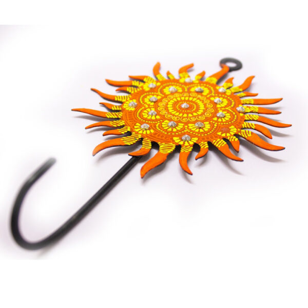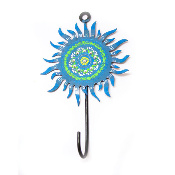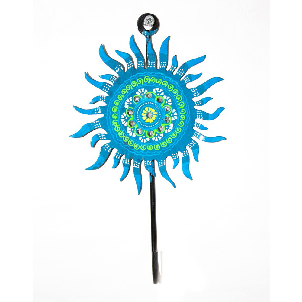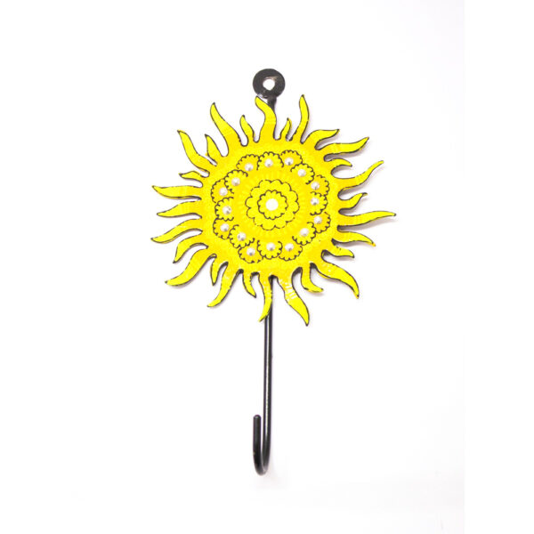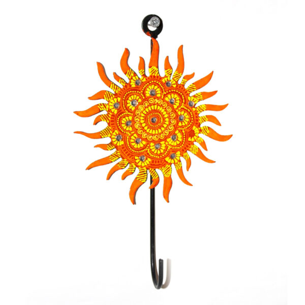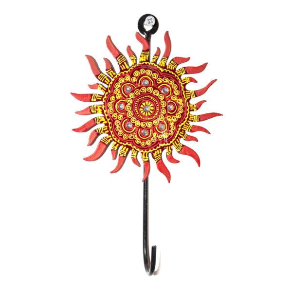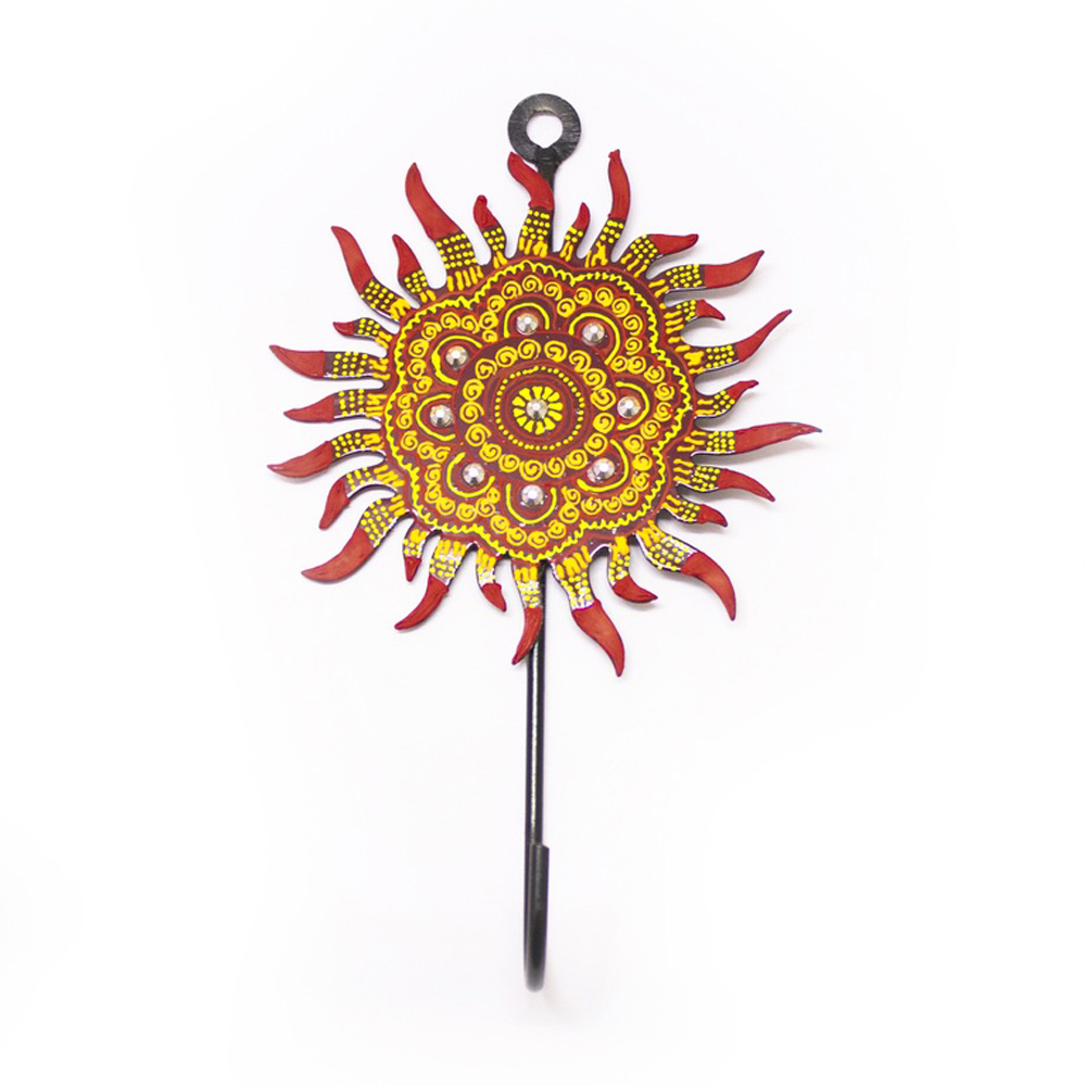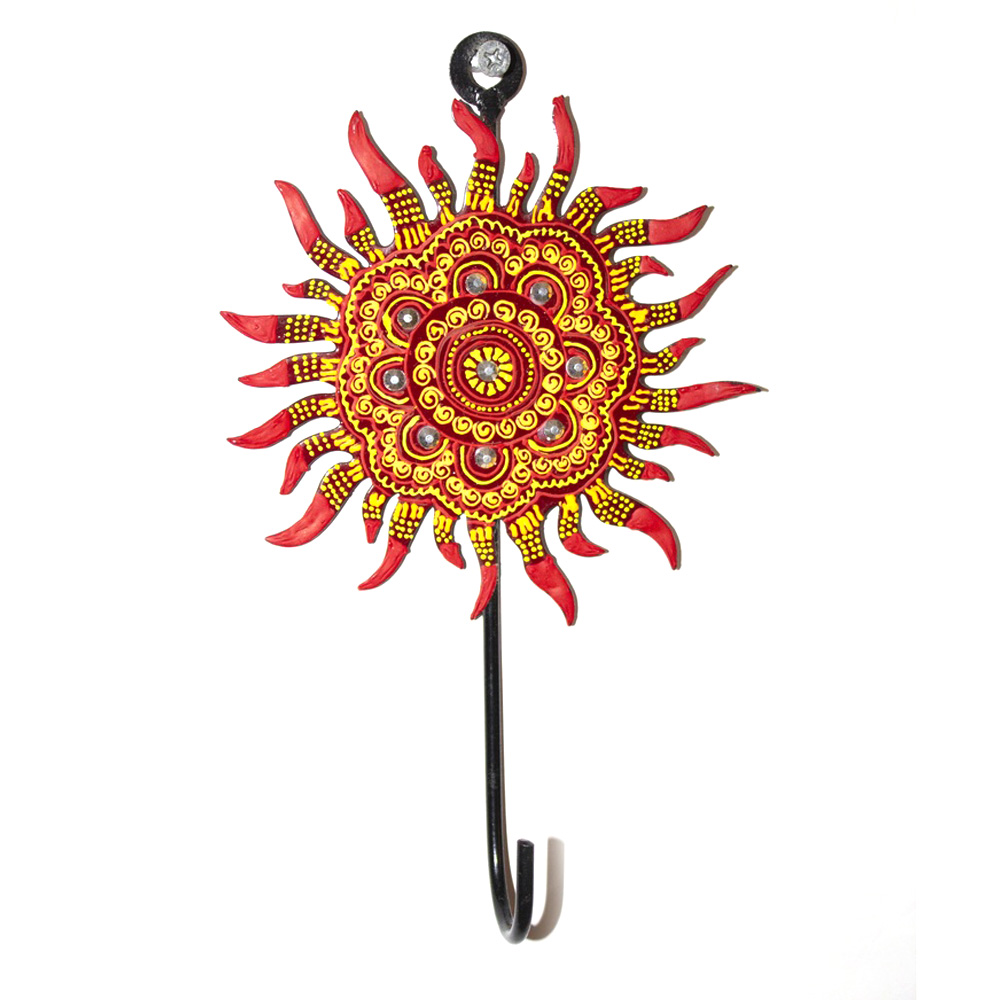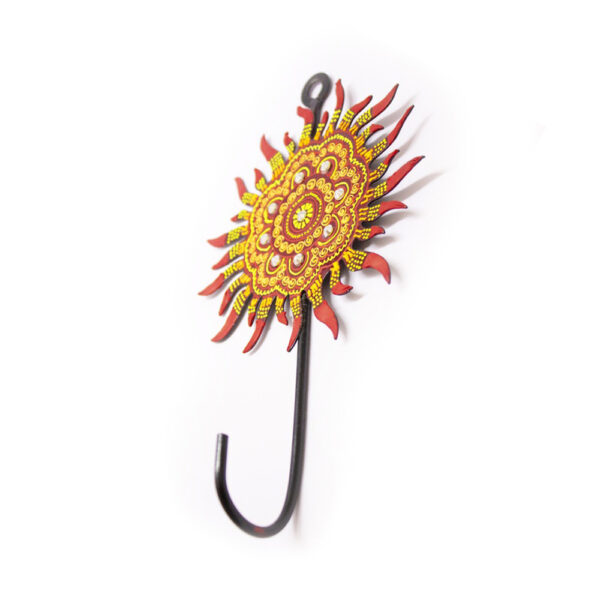 Hand-painted iron wall hook with traditional sun motif