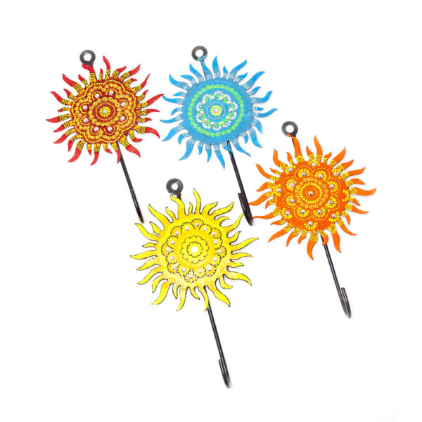 Infuse your walls with vibrant energy and traditional artistry with this Hand-Painted Sun Design Iron Wall Hook for Décor. Crafted from sturdy iron and adorned with intricate hand-painted detailing, this decorative wall hook beautifully combines functionality with cultural charm. Inspired by traditional Indian folk art, the radiant sun motif symbolizes positivity, warmth, and new beginnings, making it a meaningful addition to any living space. Each wall hook is individually hand-painted by skilled artisans, showcasing fine patterns, bold colors, and detailed textures that make every piece unique. Built from high-quality iron, it offers excellent durability and strength, ideal for hanging daily essentials such as keys, scarves, handbags, masks, caps, or light accessories. The artistic sun design instantly elevates the look of entryways, living rooms, bedrooms, kitchens, or office walls. Available in four vibrant color options – Blue, Orange, Yellow, and Maroon, these wall hooks can be styled individually as statement pieces or combined to create a colorful wall arrangement. You can choose to purchase a single hook for a subtle accent or opt for a set of four for a cohesive and eye-catching décor setup. Easy to install and versatile in use, it seamlessly blends with traditional, bohemian, eclectic, or contemporary interiors. Perfect for home décor enthusiasts and thoughtful gifting, this handcrafted wall hook makes an excellent choice for housewarmings, festivals, weddings, or return gifts. Eco-friendly and artisan-made, it supports traditional craftsmanship while offering a stylish storage solution that transforms everyday organization into art.