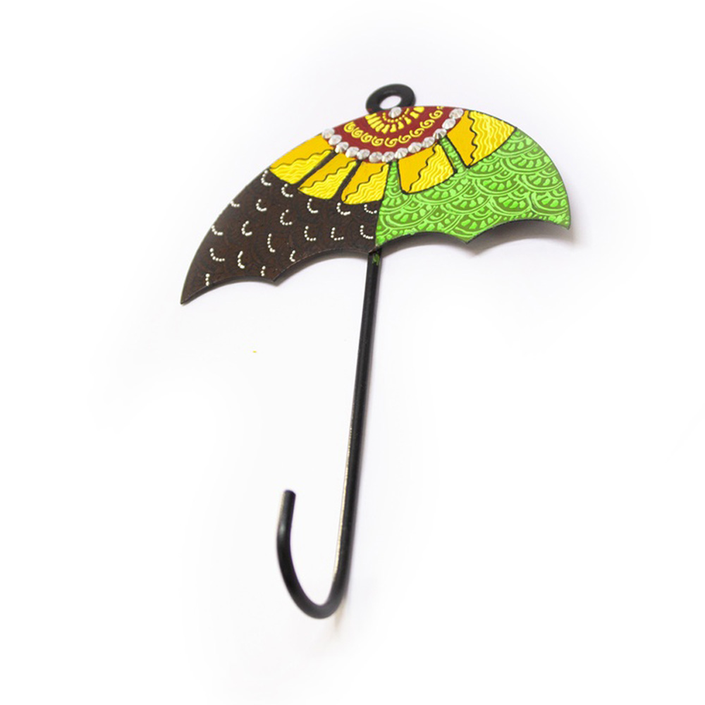 Add a splash of color and traditional artistry to your walls with this Hand-Painted Umbrella Iron Wall Hook. Beautifully crafted from durable iron and finished with intricate hand-painted details, this decorative wall hook is both functional and visually striking. Inspired by traditional Indian folk motifs, the umbrella design symbolizes protection, celebration, and cultural elegance, making it a unique accent for any space. Each wall hook is carefully hand-painted by skilled artisans, featuring vibrant hues, fine patterns, and delicate embellishments that make every piece one of a kind. The sturdy iron construction ensures long-lasting strength, allowing it to securely hold everyday essentials such as keys, scarves, handbags, caps, towels, or light accessories. Its compact yet eye-catching design makes it ideal for entryways, living rooms, bedrooms, kitchens, or even offices. Easy to mount and versatile in use, this umbrella-shaped wall hook seamlessly blends utility with décor. Whether you prefer a traditional, bohemian, or eclectic interior style, it adds warmth and personality to bare walls. The handcrafted finish and ethnic detailing also make it a thoughtful gifting option for housewarmings, festivals, weddings, or return gifts. Eco-conscious and artisan-made, this wall hook supports traditional craftsmanship while offering a stylish organization solution. Use it individually as a statement piece or pair it with other handcrafted wall accents to create a cohesive décor theme. Functional yet artistic, this hand-painted umbrella iron wall hook transforms everyday storage into a decorative experience.
