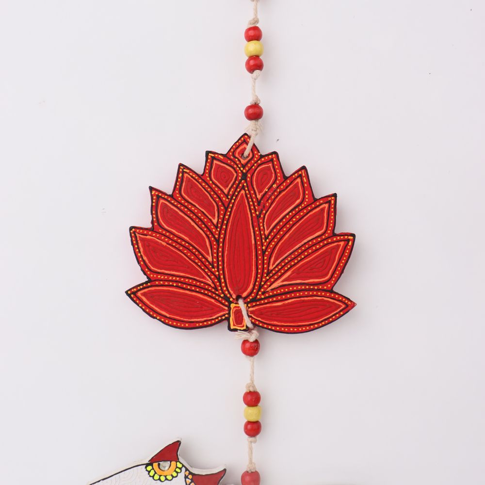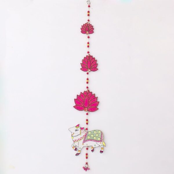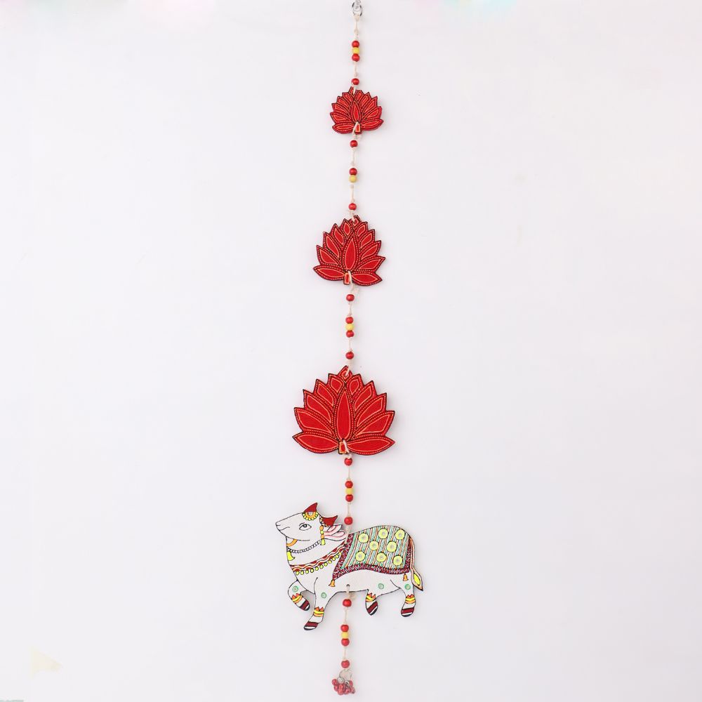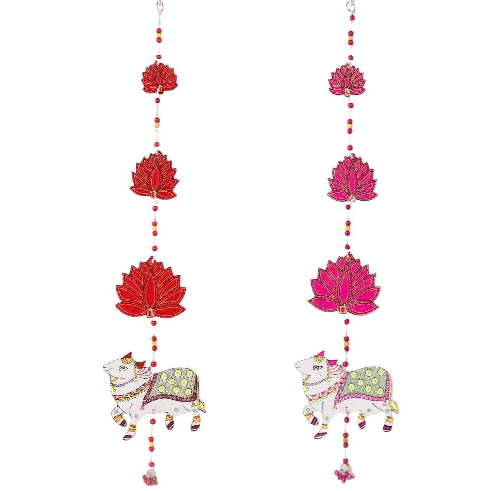 Bring home a touch of traditional charm and spiritual elegance with this Handcrafted Wooden Cow Lotus Wall Hanging, thoughtfully designed by skilled Indian artisans. This beautiful décor piece features a sacred cow motif paired with delicately carved lotus flowers, symbolizing purity, prosperity, and positivity. Perfect for enhancing the ambiance of your living room, pooja room, entrance, or festive décor, this wall hanging effortlessly blends cultural significance with vibrant artistry. Crafted from high-quality wood, each element is carefully hand-painted in rich, festive hues, making every piece unique. Available in 2 elegant color options, this wall hanging allows you to choose a shade that best complements your interior style. Whether displayed as a single hanging for a subtle accent or as a set of 2 for a balanced and grand look, it adds warmth and a traditional Indian aesthetic to any space. The cow is revered in Indian culture as a symbol of abundance, nurturing, and divine blessings, while the lotus represents spiritual growth and serenity. Together, they create a meaningful décor accent that is ideal for homes, temples, offices, or gifting during festivals like Diwali, housewarmings, weddings, or religious ceremonies. Lightweight yet sturdy, this wall hanging is easy to install and maintain. Its handcrafted nature ensures fine detailing, vibrant colors, and long-lasting appeal, making it a timeless addition to your décor collection.