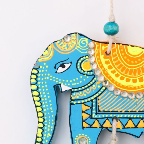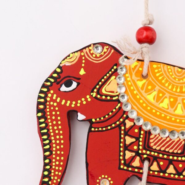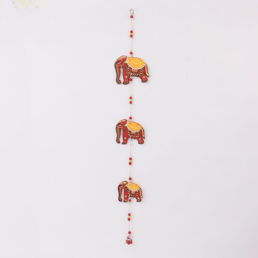 Bring charm, positivity, and artisanal beauty to your home with this Handcrafted Wooden Elephant Wall Hanging, a perfect blend of traditional craftsmanship and vibrant design. Carefully handcrafted by skilled Indian artisans, this decorative wall hanging features intricately painted wooden elephants strung together with colorful beads, creating a graceful vertical décor accent for your walls, doors, or windows. Symbolizing strength, wisdom, and good luck, elephants are considered highly auspicious in Indian décor. This wall hanging instantly uplifts your space with its rich detailing, folk-art patterns, and warm handcrafted appeal. Available in two elegant color options – royal blue and classic red, it allows you to choose a style that best complements your interiors. You can purchase this décor piece as a single hanging or opt for a set of 2, making it ideal for symmetrical wall styling, door frames, balconies, or gifting purposes. Its lightweight yet sturdy wooden construction ensures easy hanging and long-lasting beauty. Perfect for living rooms, entryways, pooja rooms, cafés, or ethnic-themed interiors, this elephant wall hanging also makes a thoughtful gift for housewarmings, weddings, festivals, Diwali, or anniversaries. Each piece carries slight variations, celebrating the authenticity of handmade art. Enhance your home décor with this timeless handcrafted wall hanging that blends tradition with contemporary aesthetics and adds a welcoming, joyful vibe to any space.
