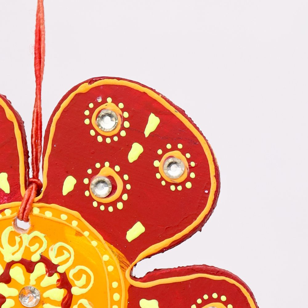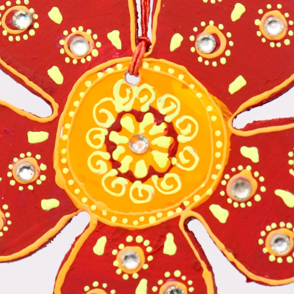 Brighten your festive décor with this charming Handcrafted Wooden Flower Christmas Hanging Set of 4, available in four vibrant colors—Red, Green, Blue, and Sky Blue. Each flower ornament is expertly crafted from high-quality wood and beautifully hand-painted with intricate traditional patterns, adding a delightful burst of color and artistry to your Christmas tree or holiday decorations. These floral hangings bring a joyful and refreshing touch, making them perfect for Christmas décor, home decorating, party décor, or gifting. Lightweight and easy to hang, these wooden Christmas ornaments come with sturdy threads and small decorative beads that enhance their festive appeal. Whether used on your Christmas tree, garlands, wreaths, doorknobs, or window displays, these handcrafted flower hangings instantly elevate your holiday ambiance with their cheerful and handcrafted charm. Their eco-friendly wooden construction makes them a long-lasting and sustainable addition to your seasonal décor collection. Ideal for anyone looking to add colorful, handcrafted ornaments to their Christmas celebrations, this set of wooden flower hangings is both decorative and meaningful.