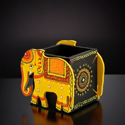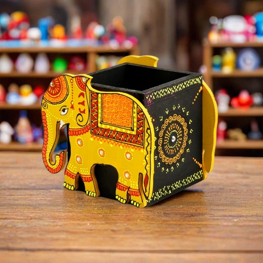 Enhance your desk décor with this beautifully crafted Handmade Wooden Elephant Pen Stand, designed to bring a touch of traditional artistry to your workspace. Made by skilled artisans, this pen holder features intricate hand-painted patterns and vibrant detailing that showcase rich Indian craftsmanship. Available in two striking colors – Yellow and Blue – this charming elephant-themed pen stand adds personality to any office, study table, or home décor setup. Its durable wooden build ensures long-lasting use, while the smooth surface is fully washable, allowing you to keep it clean and bright with minimal effort. Perfect for holding pens, pencils, markers, and small stationery items, this handcrafted accessory blends functionality with artistic elegance, making it an ideal gift for students, professionals, and art lovers.