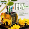 Handmade Wooden Elephant Decorative Pen Stand – Available in 2 Colors