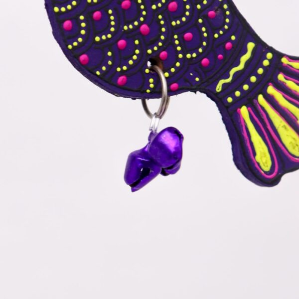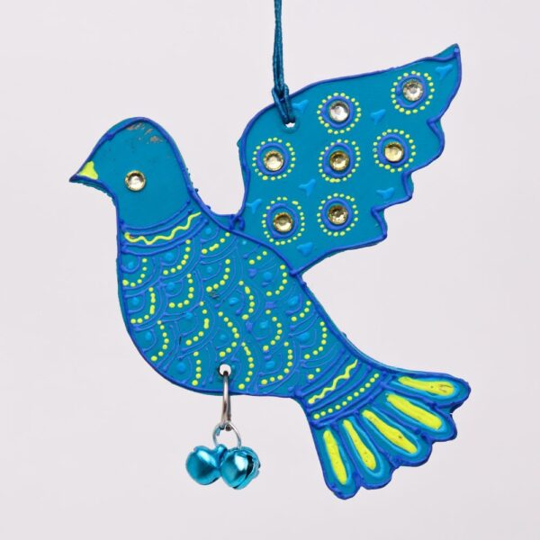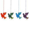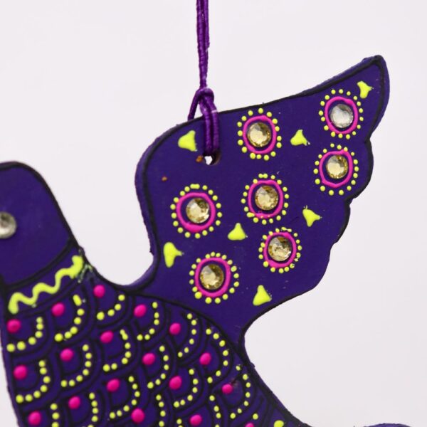 • Handcrafted wooden dove ornaments in Purple, Green, Red, and Blue